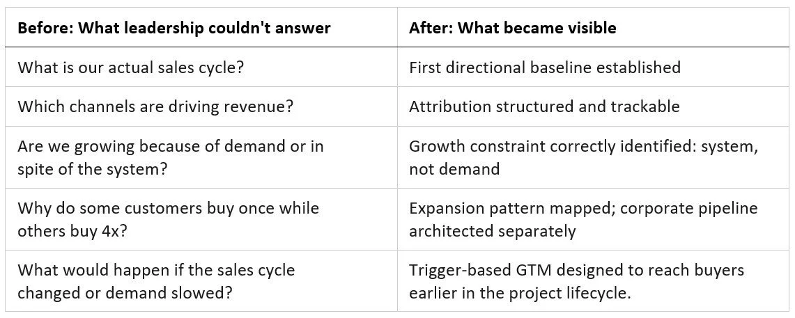 This was not a campaign. Not a rebrand. Not a content calendar. It was a reconstruction of the system behind the pipeline.